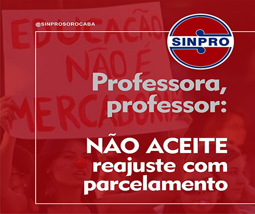 Professora, professor: não aceite o parcelamento do reajuste salarial. Qualquer decisão da escola, à revelia disso, terá que ser discutida exclusivamente com o sindicato.